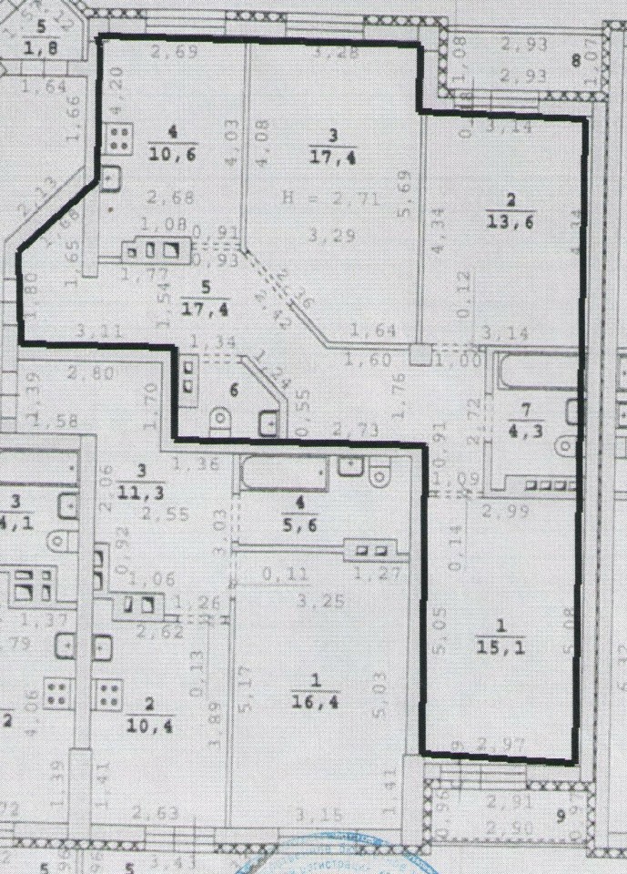 Площадь (общая/жилая/кухни) 80.5/28.7/28 кв. м